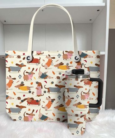 Ceeprints Eva Cee Bucket Tote Bag, Limited Edition Bogg Bag, Beach Bag Happy Dachshund