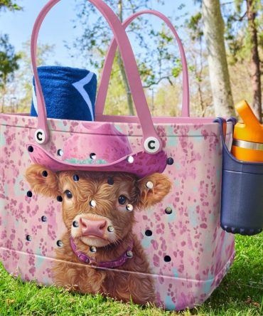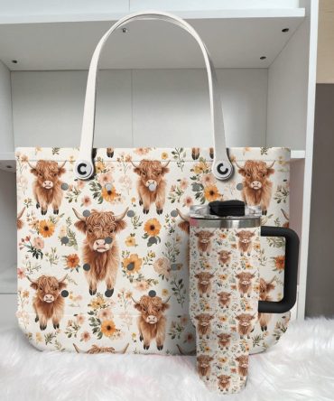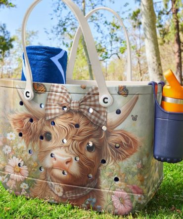 Charming Highland Cow Tote Bag With Bow – Floral Design, Durable & Stylish Handbag