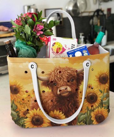 Charming Highland Cow Tote: Sunflower Field Design – Durable & Stylish Bag For All Seasons