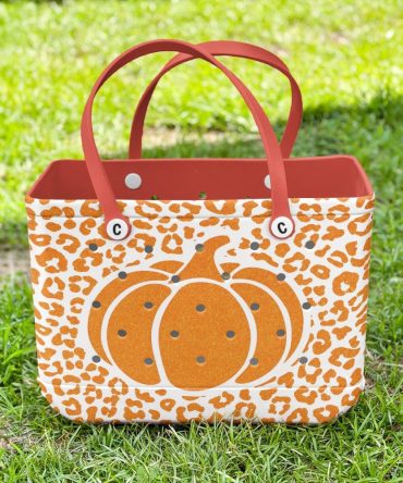 Chic Leopard Pumpkin Tote Bag – Trendy Fall Style With Durable Handles
