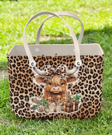 Chic Leopard Print Tote Bag With Cute Highland Cow Design – Perfect For Shopping & Gifting!