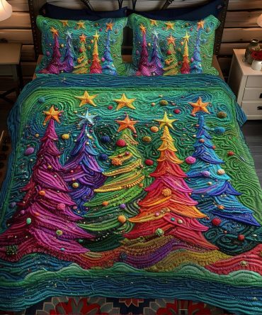 Christmas Trees Delight 3-Piece Quilted Bedding Set