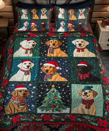 Christmas Themed Labrador 3-Piece Quilted Bedding Set