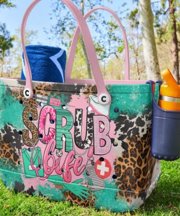 Colorful ‘Scrub Life’ Tote Bag – Fun Medical Theme, Pink & Leopard Print
