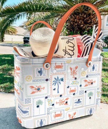 Colorful Beach Tote Bag With Nautical Crab & Palm Print – Durable, Stylish, Perfect For Summer Adventures