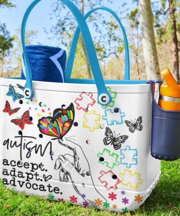 Colorful Autism Tote Bag – Embrace, Adapt, Advocate With Puzzle & Butterfly Design – Perfect For Everyday Use