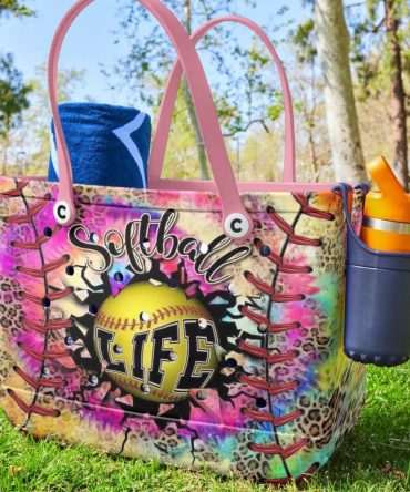 Colorful Softball Life Tote Bag – Vibrant Sports Lover’S Handbag With Pink Handles