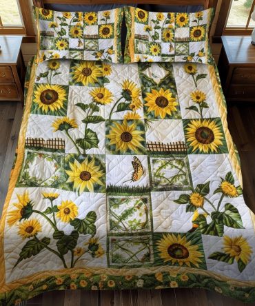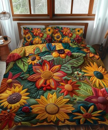 Colorful Sunflowers 3-Piece Quilted Bedding Set