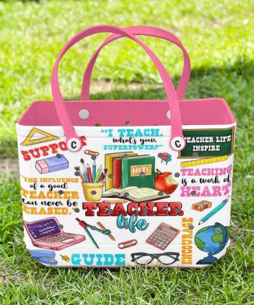 Colorful Teacher Tote Bag – Inspirational Quotes & Supplies Design – Perfect Gift For Teachers!
