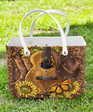 Country Chic Tote Bag – Sunflower, Guitar & Butterfly Western Design – Stylish & Spacious