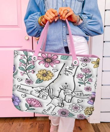 Custom Floral Tote Bag With Pink Handles – Personalized Design For Stylish Everyday Use