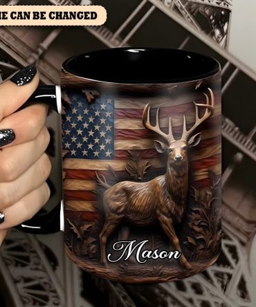 Deer & American Flag – Personalized Deer Accent Mug