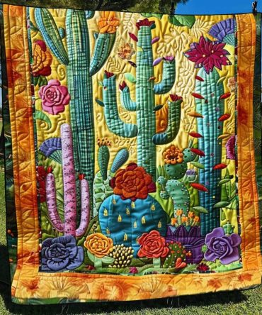 Desert Cactus Blooms Quilted Blanket