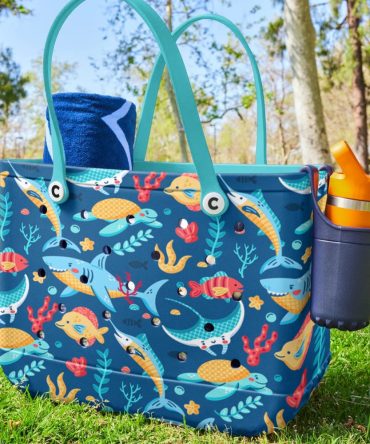 Eco-Friendly Ocean Adventure Beach Bag – Vibrant Marine Life Print, Durable & Spacious Tote For Summer Fun