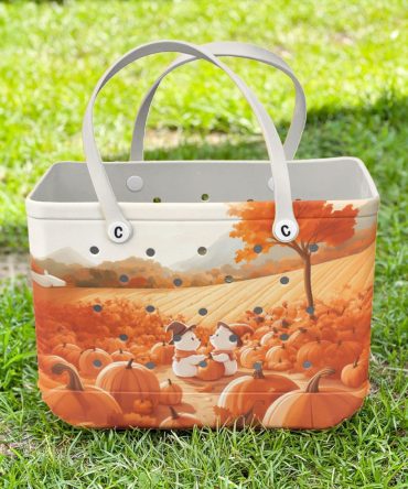 Eco-Friendly Autumn Tote Bag With Cute Bear & Pumpkin Design – Perfect For Fall Outings