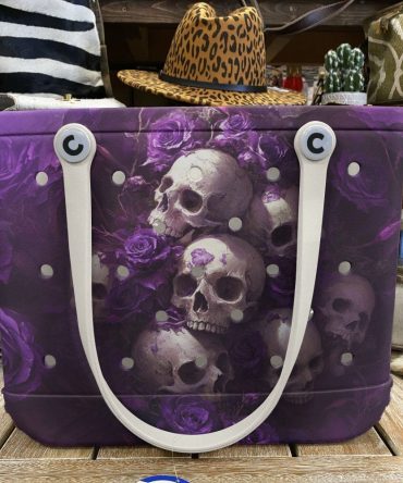 Edgy Gothic Tote Bag With Skulls & Purple Roses – Perfect For Unique Style