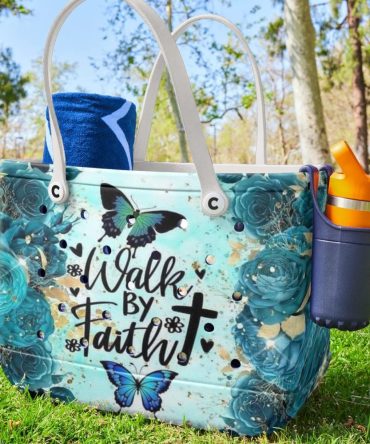 Elegant ‘Walk By Faith’ Tote Bag – Floral Butterfly Design, Perfect For Everyday Style