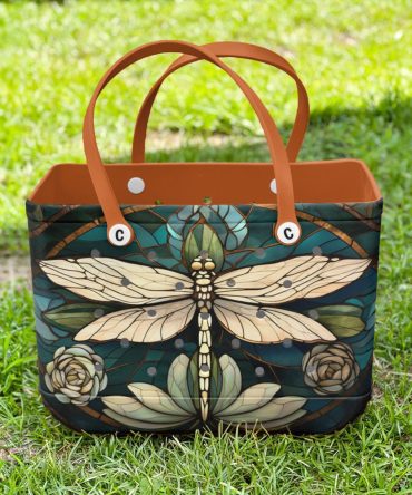 Elegant Dragonfly Tote Bag – Vibrant Stained Glass Design, Durable & Stylish For Everyday Use