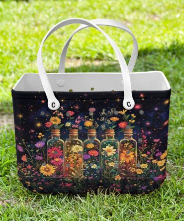 Enchanting Floral Tote Bag With Cosmic Night Sky Design – Perfect For Stylish Outings