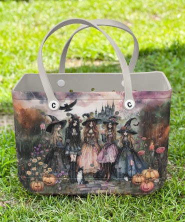 Enchanting Witchy Tote Bag – Magical Halloween Design With Pumpkins & Castles