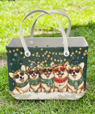 Festive Corgi Tote Bag – Christmas Lights & Sunglasses Design – Perfect Holiday Gift!