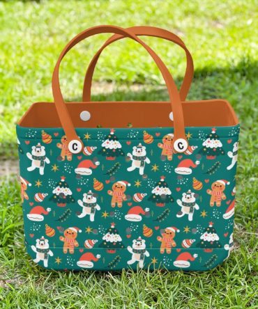 Festive Holiday Tote Bag – Cute Christmas Print With Gingerbread & Polar Bears – Perfect Gift!