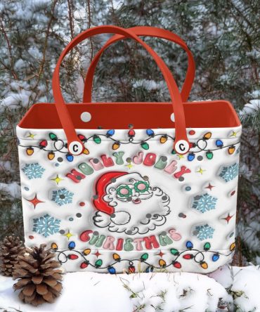 Festive Holly Jolly Christmas Tote Bag With Santa & Lights – Perfect For Holiday Shopping!