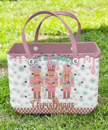 Festive Nutcracker Christmas Tote Bag – Pink & White Holiday Design For Shopping & Gifts