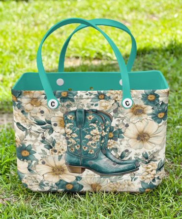 Floral Western Boot Tote Bag – Stylish Turquoise & Flower Design For Everyday Use