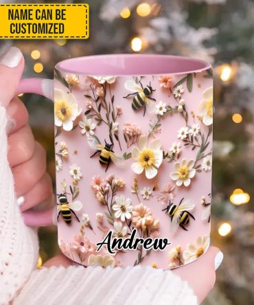 Flower And Bee – Personalized Accent Mug
