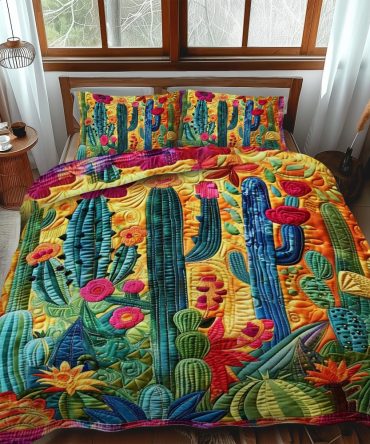 Flowering Cactus 3-Piece Quilted Bedding Set