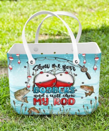 Fun Fishing Tote Bag – Show Me Your Bobbers Design – Perfect For Anglers