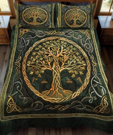 Golden Celtic Tree Of Life 3-Piece Quilted Bedding Set