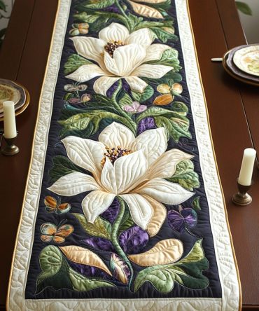 Magnolia Flower Quilted Table Runner