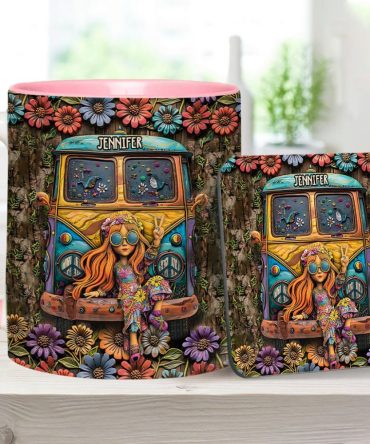 Hippie Bus And Girl – Personalized Hippie Accent Mug