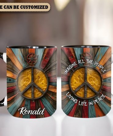 Hippie Symbol Imagine All The People 3 – Personalized Hippie Accent Mug