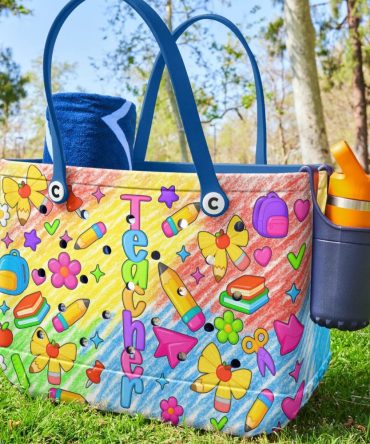 Bright Teacher Tote Bag – Colorful School Supplies Design For Educators