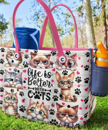 Bucket Tote Bag, Limited Edition Bogg Bag, Beach Bag Life Is Better With Cats