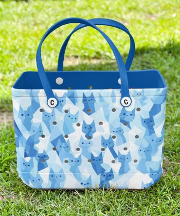Bucket Tote Bag, Limited Edition Bogg Bag, Beach Bag Blue Meow-Mory