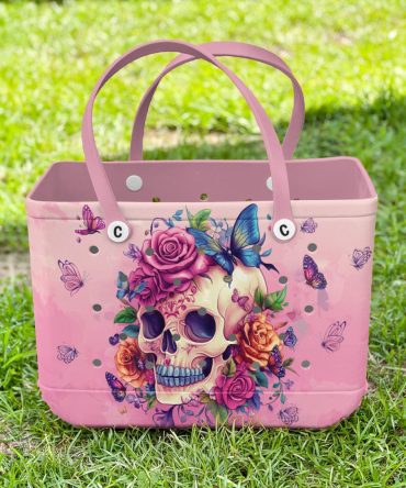 Bucket Tote Bag, Limited Edition Bogg Bag, Beach Bag Blooming Skull