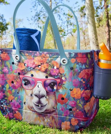 Bucket Tote Bag, Limited Edition Bogg Bag, Beach Bag Boho Bloom Llama