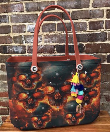 Bucket Tote Bag, Limited Edition Bogg Bag, Beach Bag Burning Skull