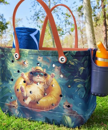 Bucket Tote Bag, Limited Edition Bogg Bag, Beach Bag Cats’ Vacation