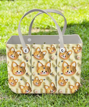 Bucket Tote Bag, Limited Edition Bogg Bag, Beach Bag Corgi Joy