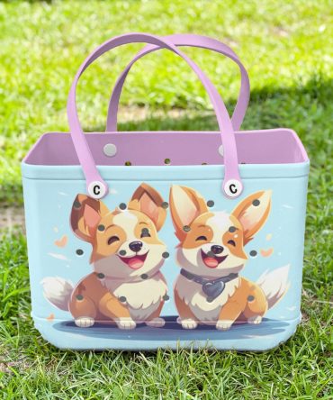 Bucket Tote Bag, Limited Edition Bogg Bag, Beach Bag Corgis In Love