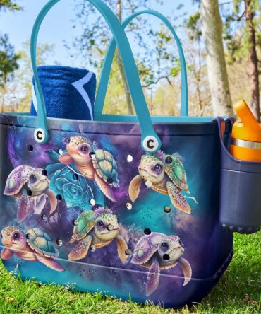 Bucket Tote Bag, Limited Edition Bogg Bag, Beach Bag Cosmic Turtle Neon