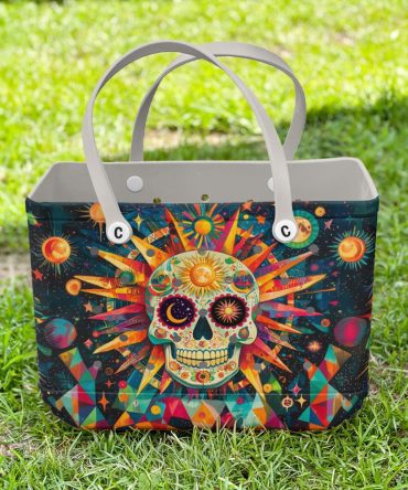 Bucket Tote Bag, Limited Edition Bogg Bag, Beach Bag Cosmic Skull