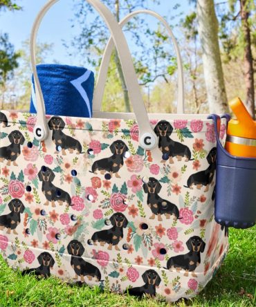 Bucket Tote Bag, Limited Edition Bogg Bag, Beach Bag Dachshund Bloom Delight